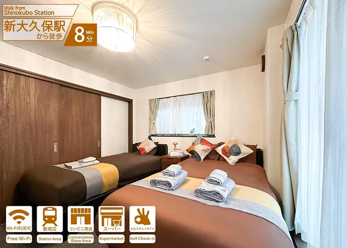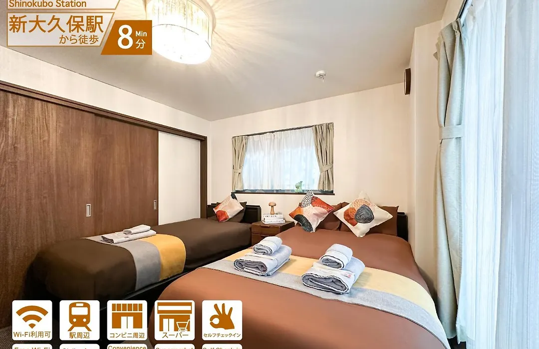 Omotenashi Villa Shinjukuは快適な滞在のために個別のエアコン、室内金庫とパノラマ式の窓が完備された部屋等を提供しています。 客室にはプライベートなバスルームが付いています。 また、柔らかいバスローブ、バスシートとスリッパも利用できます。